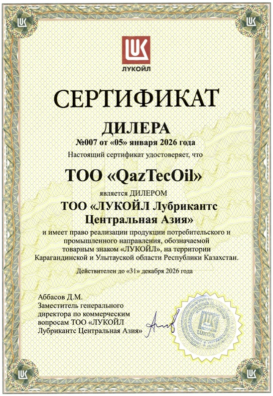 ТОО «QazTecOil» является официальным дилером (ссылка на официальный сайт) «ЛУКОЙЛ Лубрикантс ЦА» с 2015 года.
